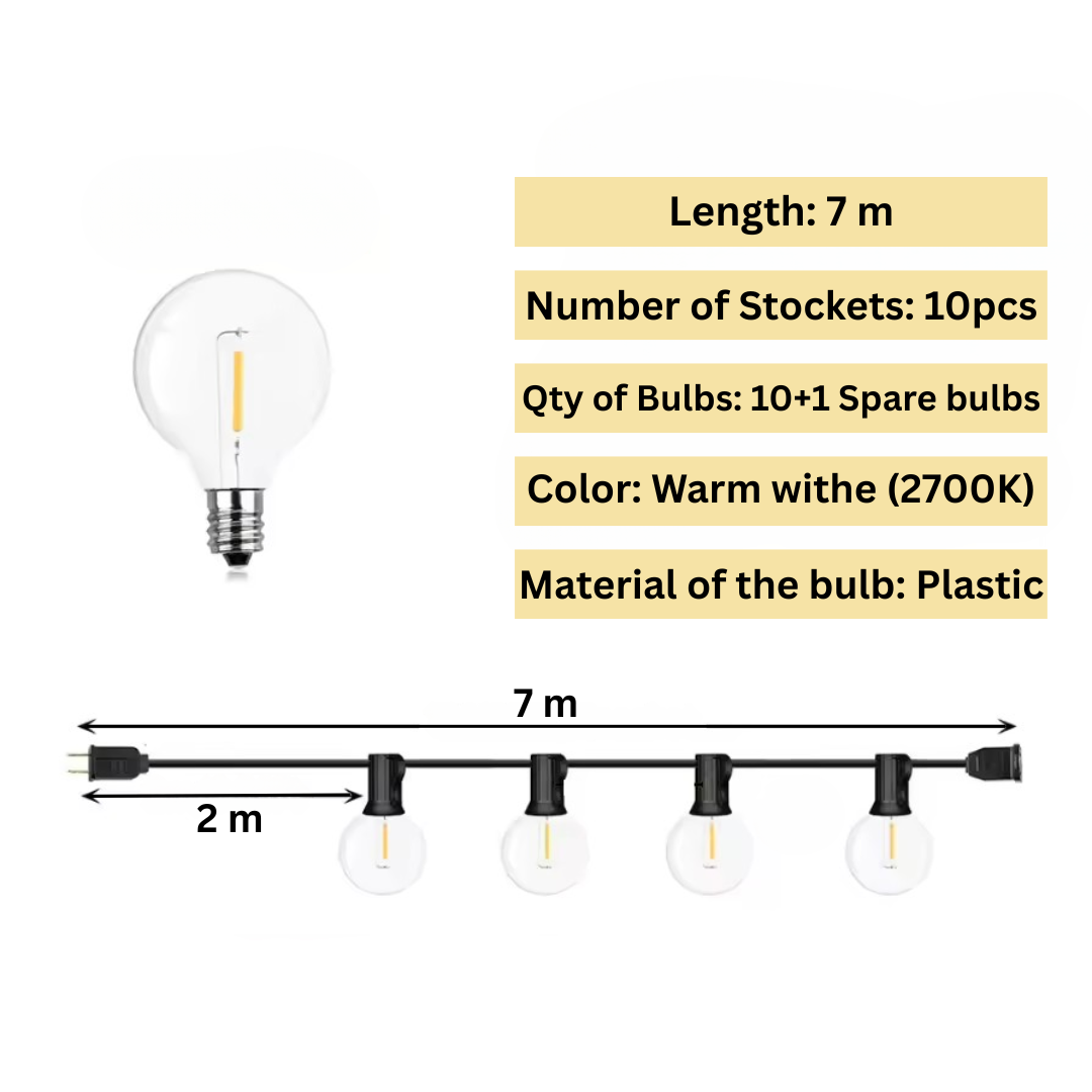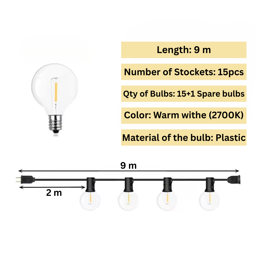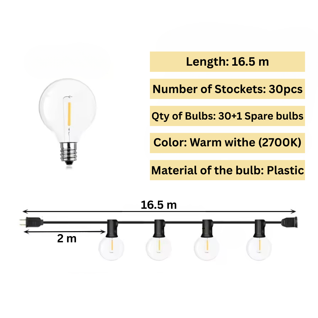 Bringe Stimmung in deinen Außenbereich mit der G40 LED Outdoor Lichterkette – perfekt für Garten, Terrasse, Hochzeit oder Camping!